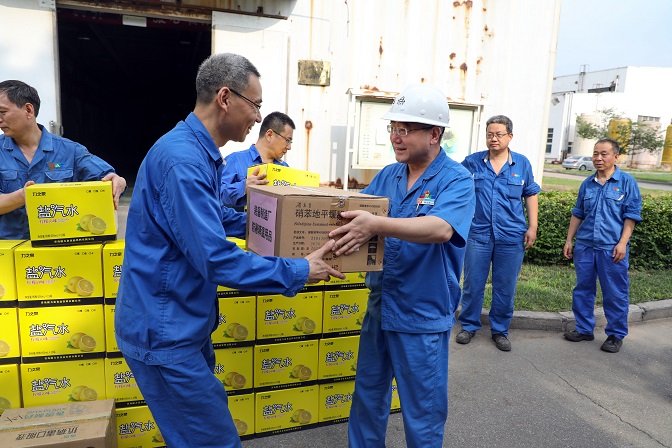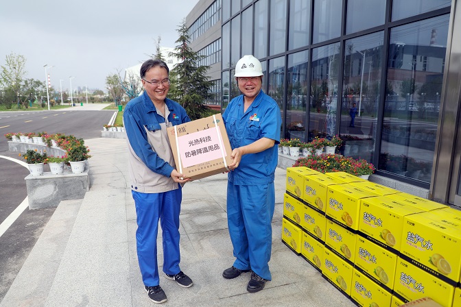 在慰問現(xiàn)場,陳總向奮戰(zhàn)在高溫一線的廣大干部職工致敬,對大家在炎炎酷暑中依然堅守崗位、為企業(yè)發(fā)展貢獻力量的無私奉獻精神表示感謝,并叮囑大家制定合理作業(yè)時間,減少高溫時段作業(yè),做好職業(yè)健康防護。陳總強調,大暑小暑,上蒸下煮,眼下正值高溫酷暑,對于生產(chǎn)一線的職工來說,是體力和毅力上的艱難挑戰(zhàn),各單位要把防暑降溫工作作為夏季重點工作來抓,切實關心職工身體健康和勞動安全,把勞動安全保障措施落實到每個車間、每個班組、每個高溫崗位和每名職工,確保廣大職工身心健康和平安度夏。最后,陳總鼓勵廣大職工要保持高昂的干勁,發(fā)揚艱苦奮斗的精神,以飽滿的工作狀態(tài)投入工作,全力以赴完成各項生產(chǎn)經(jīng)營任務。