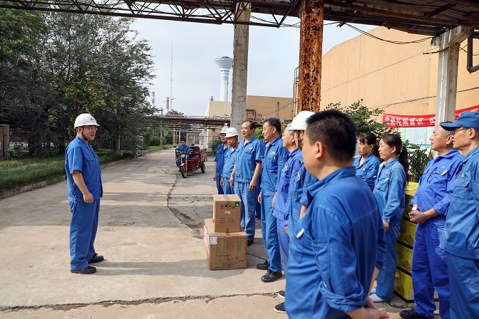 公司黨委副書記、總經(jīng)理陳志剛帶隊,先后來到動力廠、裝備制造廠、CNG加氣站、光熱科技、光伏新材料和安彩能源,為一線職工送去飲料、菊花茶、風油精、藿香正氣水、仁丹等防暑降溫藥品和物資,確保生產(chǎn)安全,職工平安度夏。